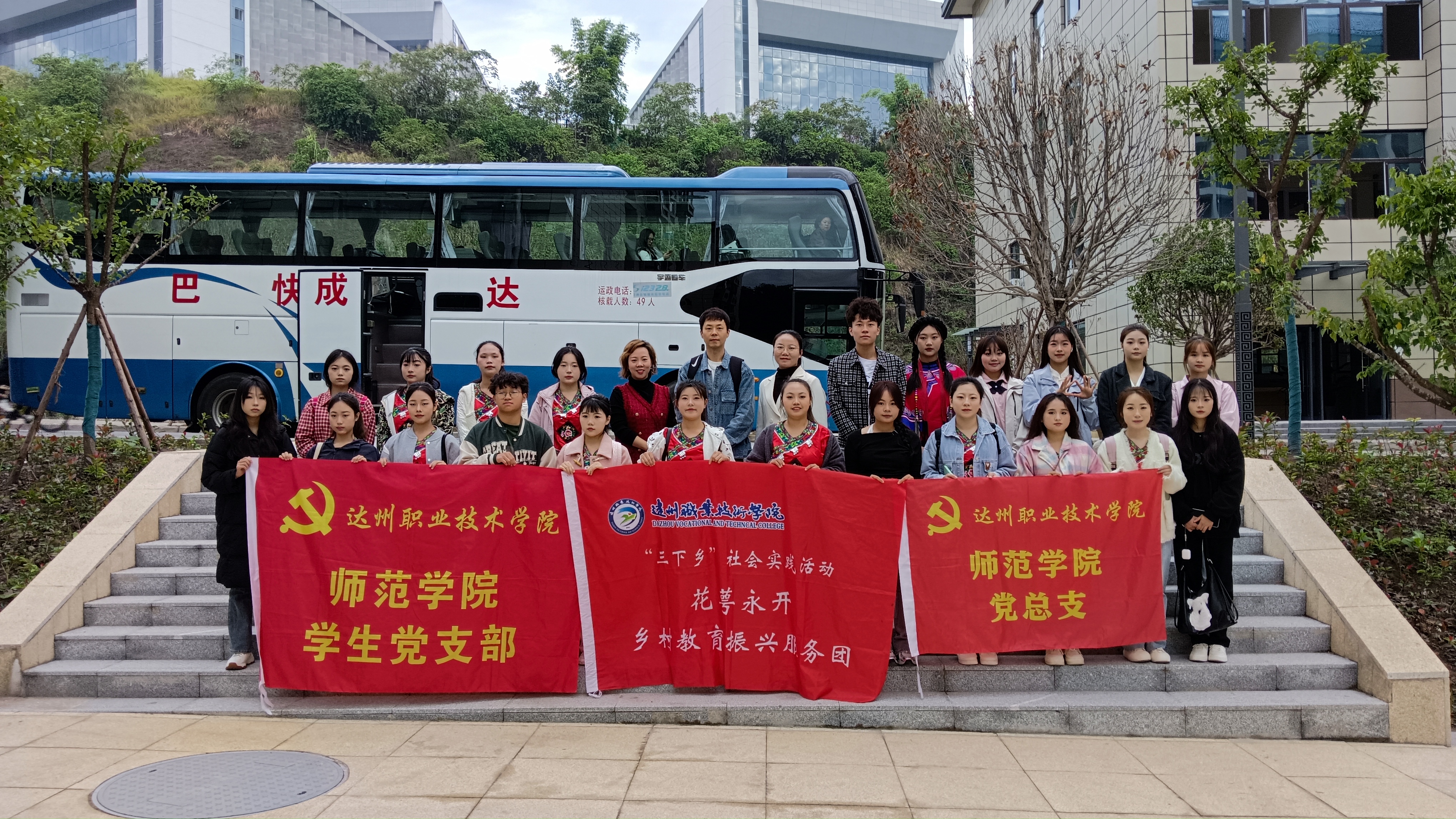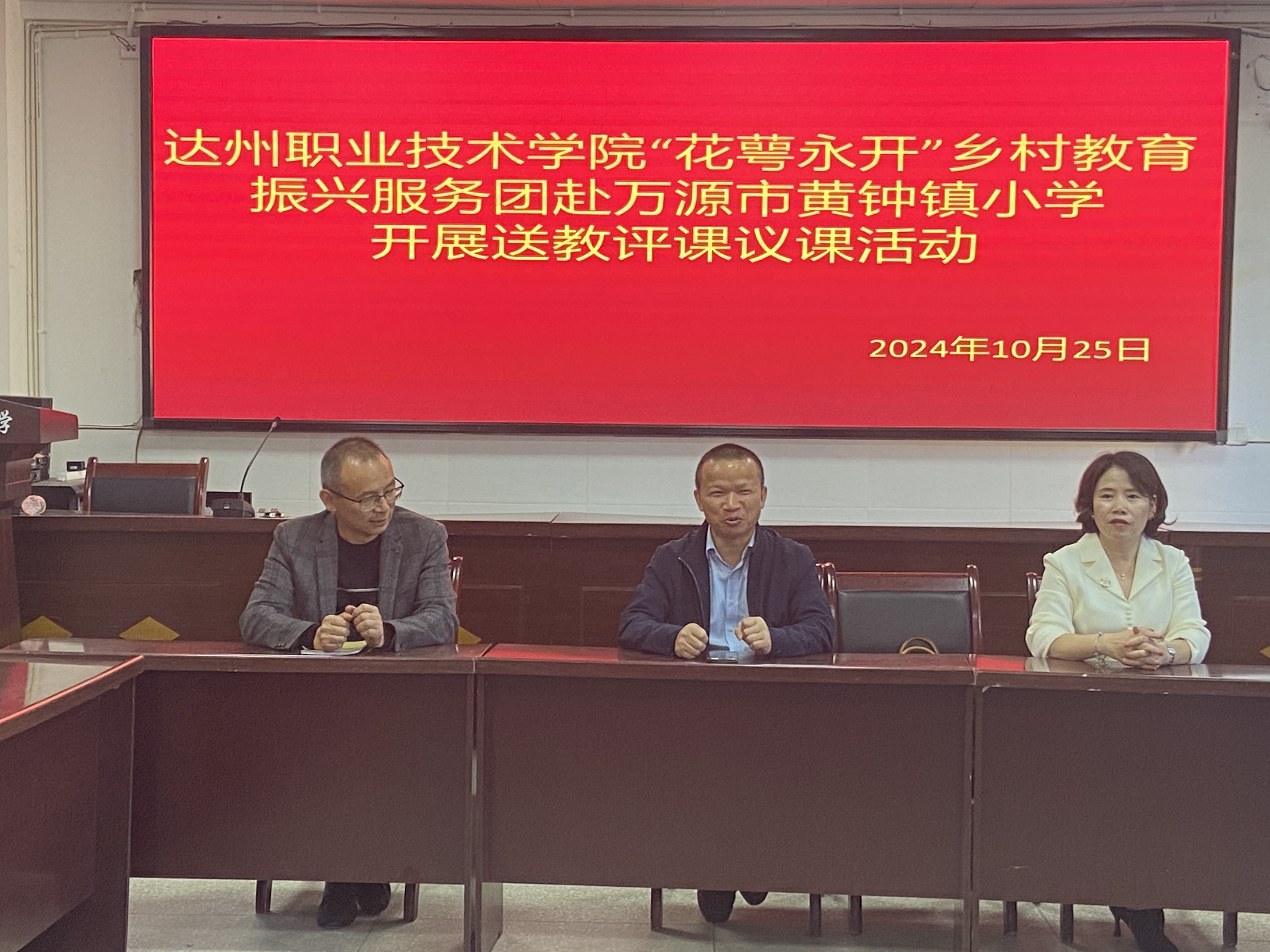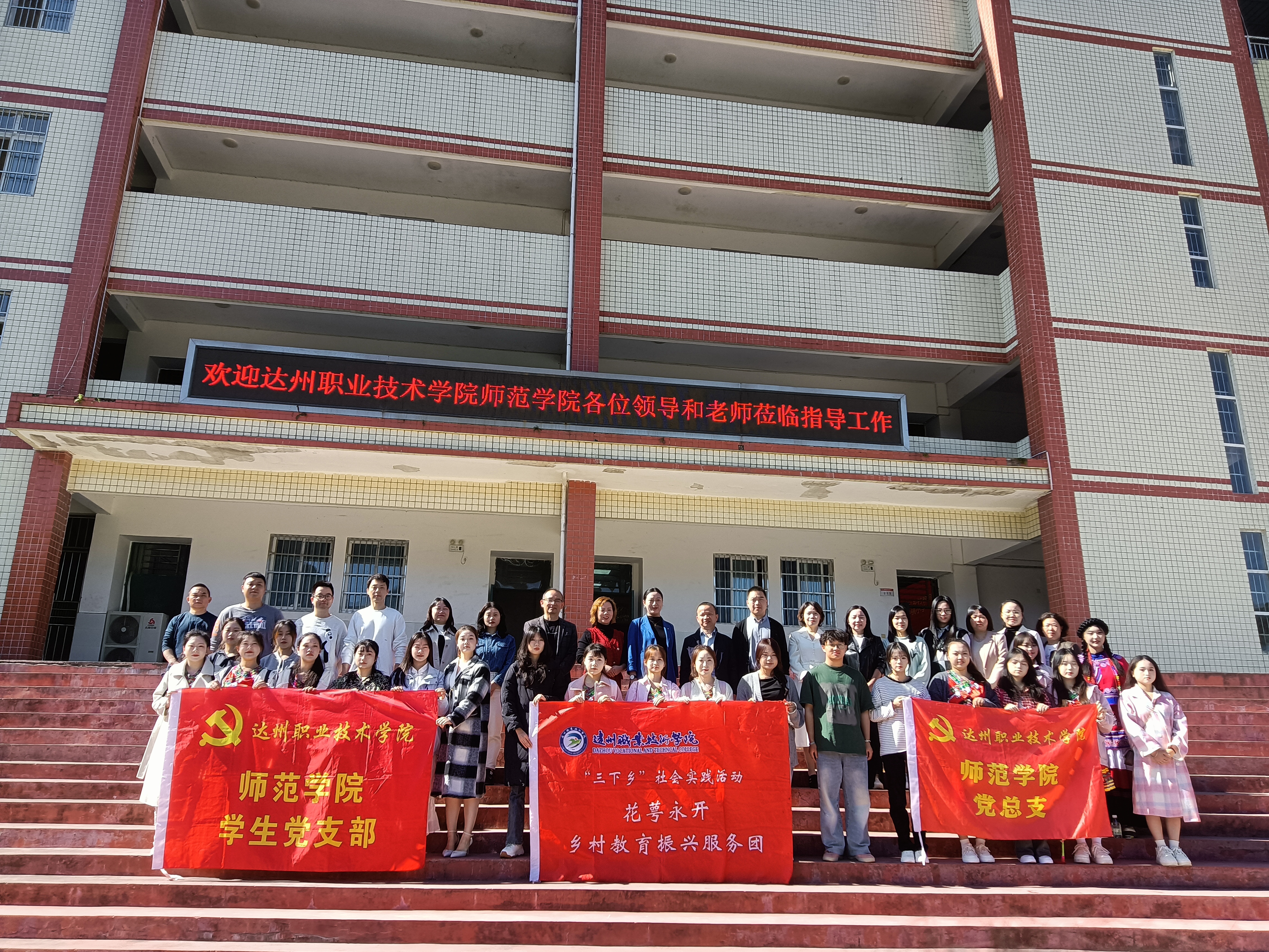 为认真落实《达州市教育系统托底性帮扶万源市学校工作方案》,助力全市教育事业优质均衡发展,10月25日上午,在达州职业技术学院师范学院党总支书记邱明春、院长柏晶带领下,党总支副书记、学生党支部书记刘佳,各专业教研室主任、专任教师肖博,辅导员张冰玉及师范学院“花萼永开”乡村教育振兴服务团学生成员一行37人前往万源市黄钟镇小学开展托底帮扶活动。