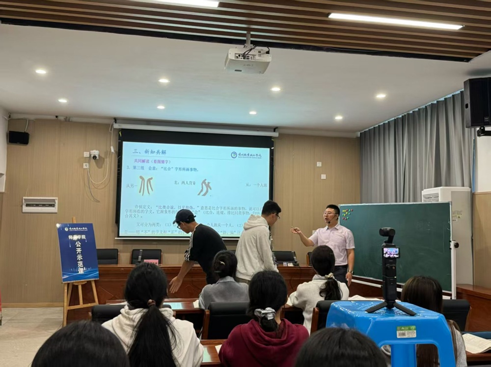 车飞副院长以《“字”有其理:解密汉字基因》为题,为《现代汉语》课程教学提供了新颖视角。他围绕“汉字的造字法”章节,从多样造字方法切入,深入剖析汉字构造的逻辑。