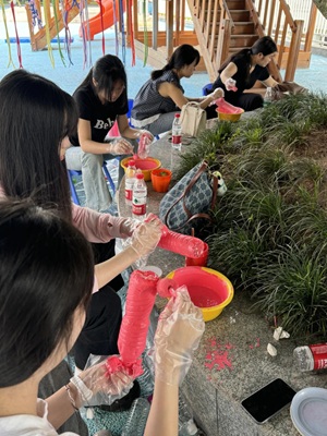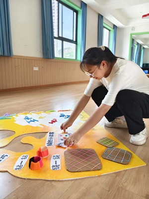 活动前期,师范学院师生团队秉持"环保、创新、实用"理念,利用废旧纸箱、塑料瓶、卡纸等日常材料,结合学前教育专业特色,精心设计制作环创教具。从绘制设计图稿到裁剪塑封,从色彩搭配到立体造型,每一件作品都凝聚着师生的巧思与匠心。