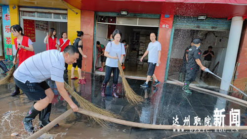 截至晚18时,在大家的共同努力下,我院志愿者已完成责任区内街道、商铺的全部清淤工作,被洪水淹没过的街道、商铺又恢复了往日的干净、整洁。