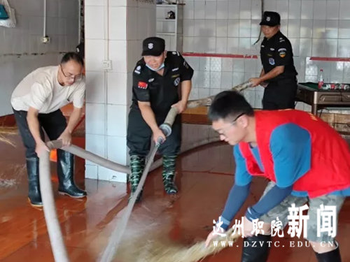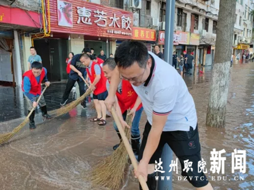 19日上午洪峰过境达城主城区,在组织人事部统一调度下,党政办、宣传部、安全保卫处、后勤管理处积极配合,60余名教职工志愿者迅速集结到滨河东路8-10号,一场水退人进清淤大战就此打响。党委副书记刘江现场指导并参加志愿服务。