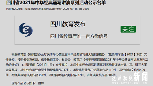 正在公示:学院教师两项讲经典作品获四川省2021年中华经典诵写讲演系列活动三等奖