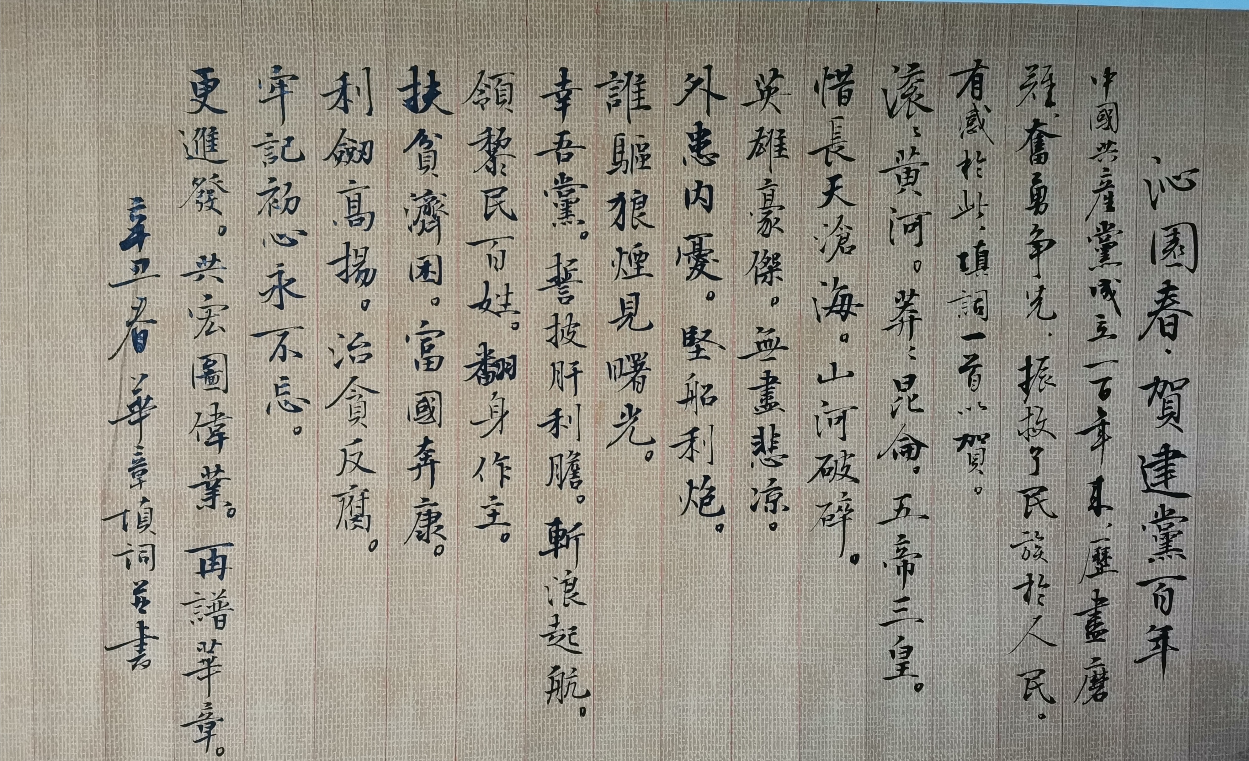 党史学习教育书法作品:《沁园春·贺建党百年》